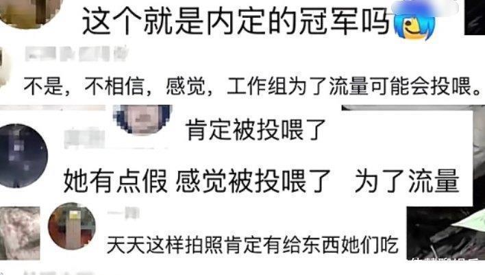 关于这份指责,总策划人是这么澄清的。他说,虽然大家都挺喜欢看冷美人,不过节目组绝对没可能偷偷给她投喂,因为谁也保证不了,冷美人退赛之后,会不会把投喂她的事给曝光了。
